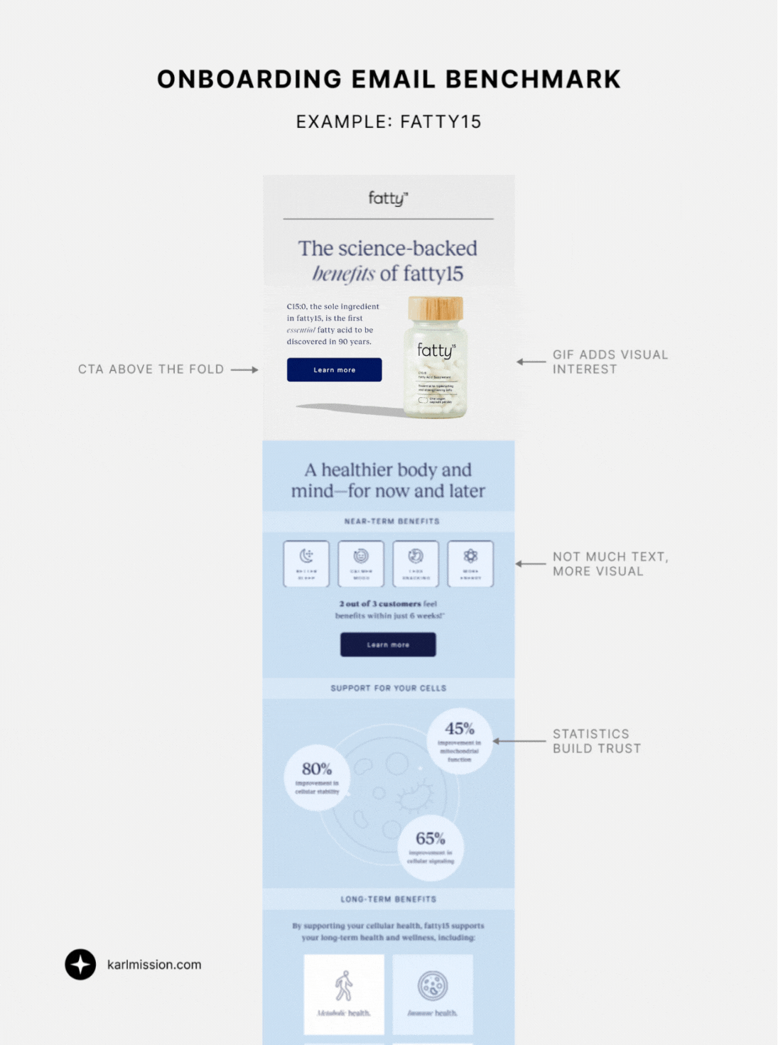 Credibility emails should feel credible. Strong hierarchy, visuals, and selective data outperform long explanations.
